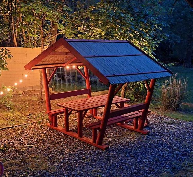 Válogatott fenyőből készítjük a 8-10-12 személyes filagóriákat. Sokan tartanak attól, hogy a fenyőfa nem bírja olyan sok ideig, mint a keményebb faanyagok, azt viszont szeretnénk leszögezni, hogy a megfelelően felületkezelt (alapozott, pácolt) fenyő épp olyan időtálló, mint a többi fa alapanyag. Strapabíró, gyönyörű erezetű, masszív szerkezetű fa, amely hosszú évekig megbízható dísze az udvarnak. Kerti kiülőinket első körben gomba -és rovarkárosítással szembeni szerrel kezeljük, majd ezt követően 2-3 rétegben prémium vékony lazúrral festjük a kívánt színre.